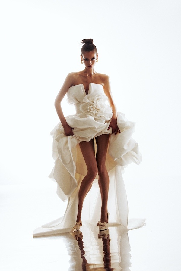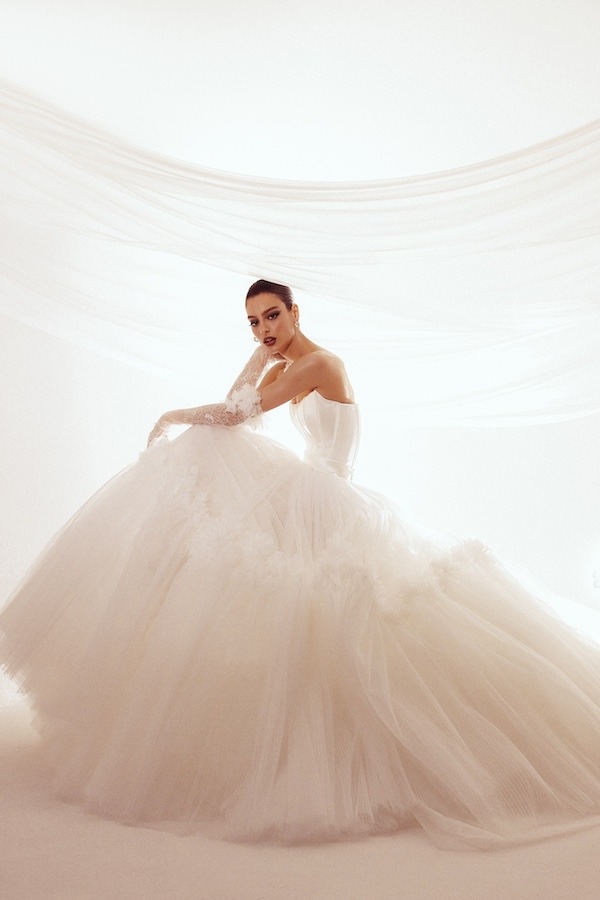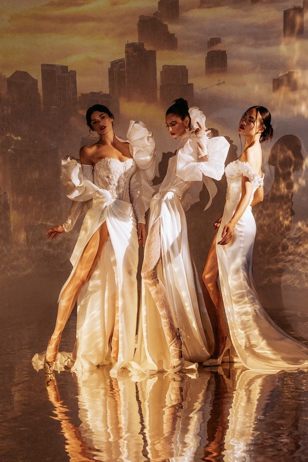 Dalle silhouette fluide e romantiche ai dettagli, dai tessuti alle lavorazioni che conferiscono ai modelli un aspetto estremamente ricercato e mai scontato, perfetto per la sposa che ha l’obiettivo di far imprimere nella mente degli invitati la propria immagine.