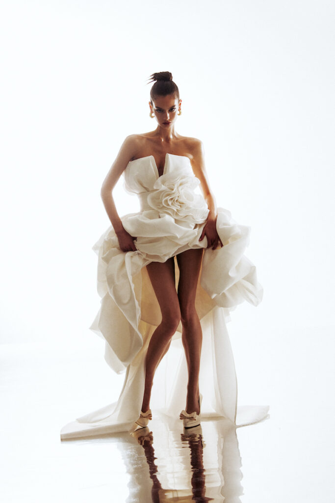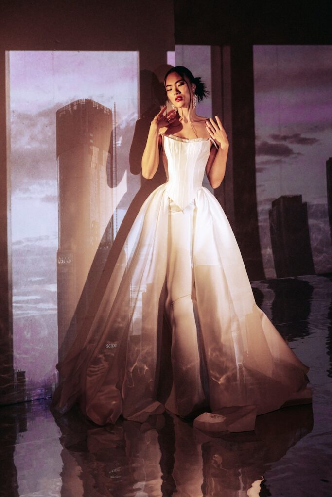 Inoltre, la vestibilità inclusiva della collezione rende ogni modello adatto a diverse fisicità: i tagli intelligenti, come il bustino con taglio a V in vita, sono pensati per esaltare i punti di forza e accompagnare le forme con armonia. Anche l’esperienza della prova diventa più coinvolgente, stimolando la creatività e il gioco nel comporre il proprio abito ideale.