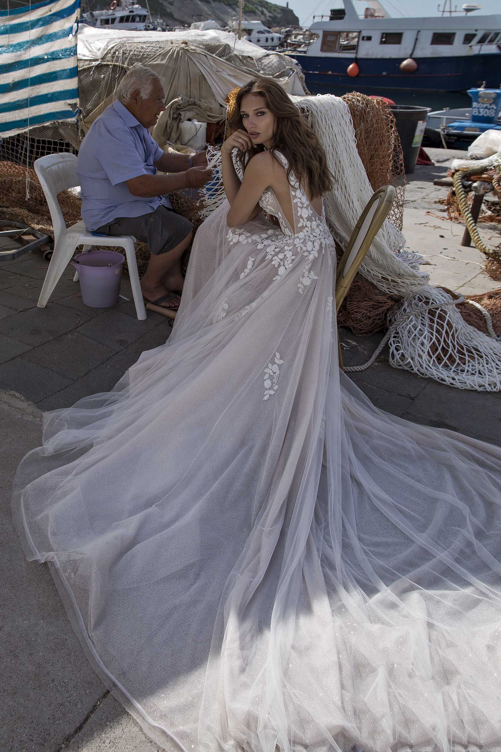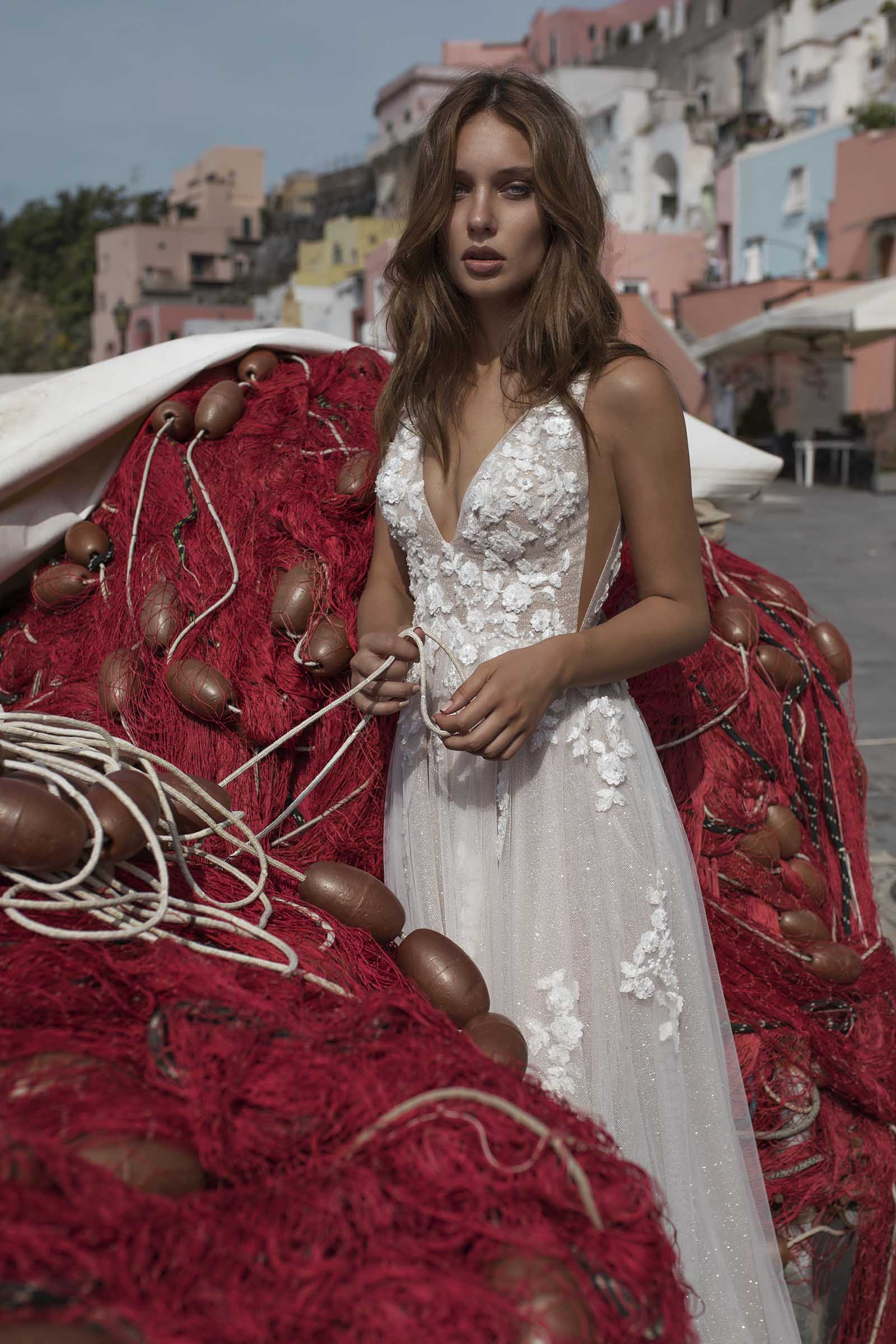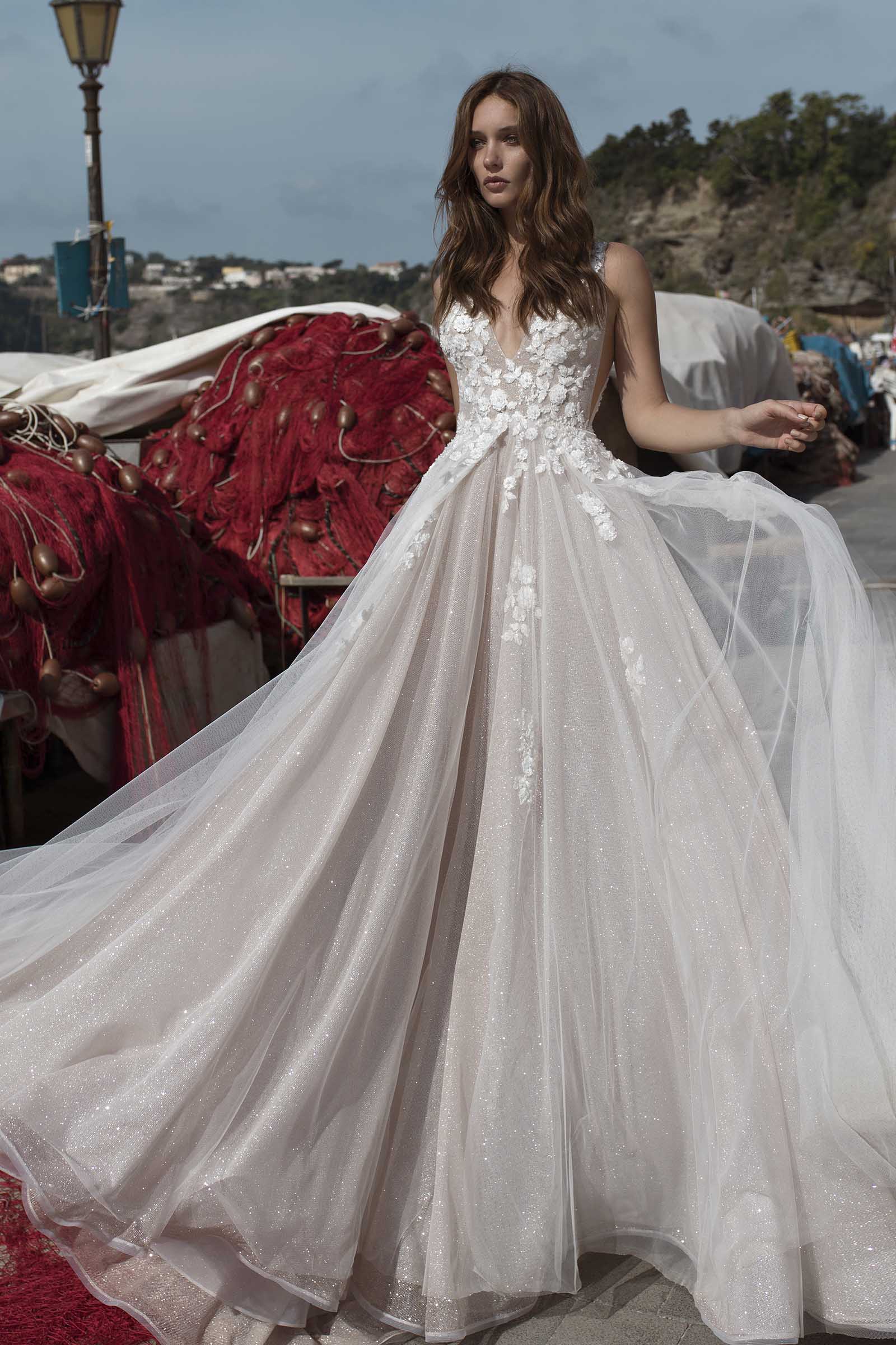 L’abito Pandora di Maison Signore è una meraviglia scintillante, capace di incantare con la sua luminosità e bellezza.
