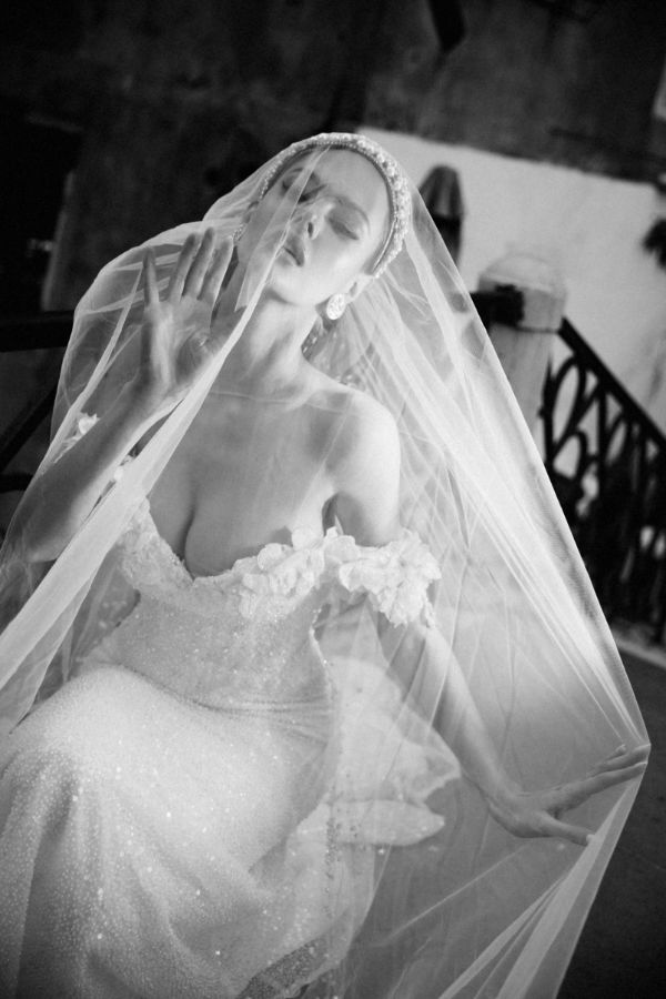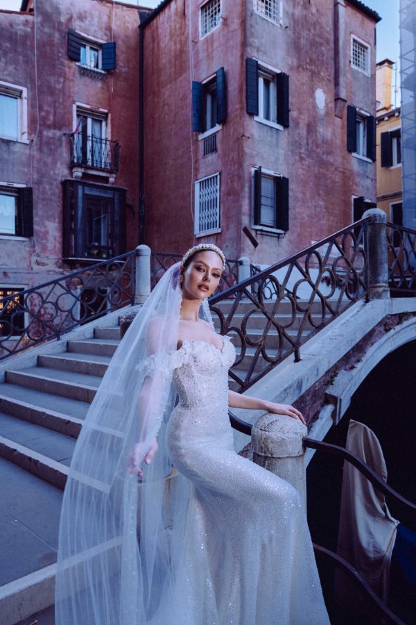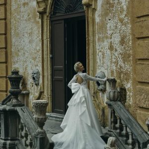 Be embraced by the magic and elegance of a wedding dress that will make you feel like a goddess in an enchanted garden, with eye-catching and heart-catching details. 3D flowers, sparkling pearls, and shiny crystals all make Angelina a floral dream that becomes reality once worn.