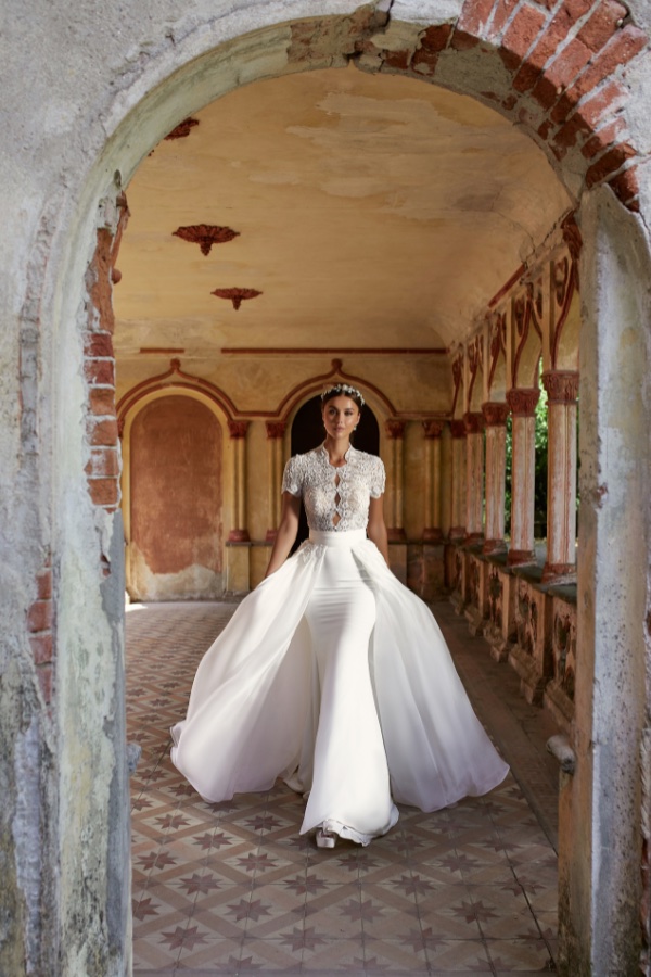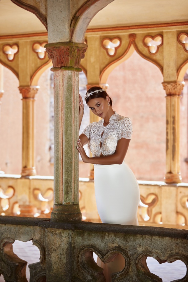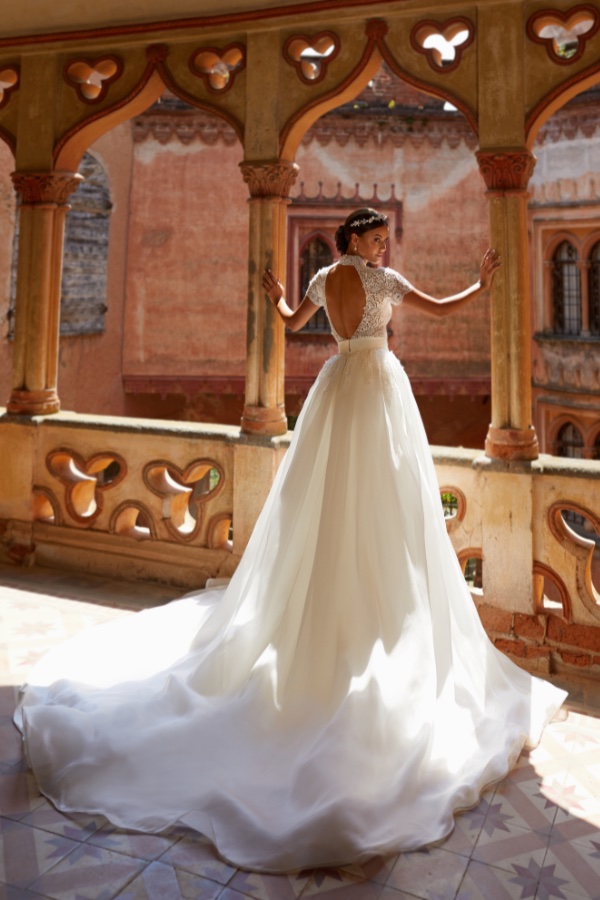 And with this gown, no bride will ever be an extra, but the one and only protagonist. A tribute to the grace of Grace Kelly, to her femininity and innate charisma. This dress embodies the elegance of great icons, blending regal details in a perfect balance between tradition and modernity. For this reason, it could only be a best seller in the Maison Signore collection.