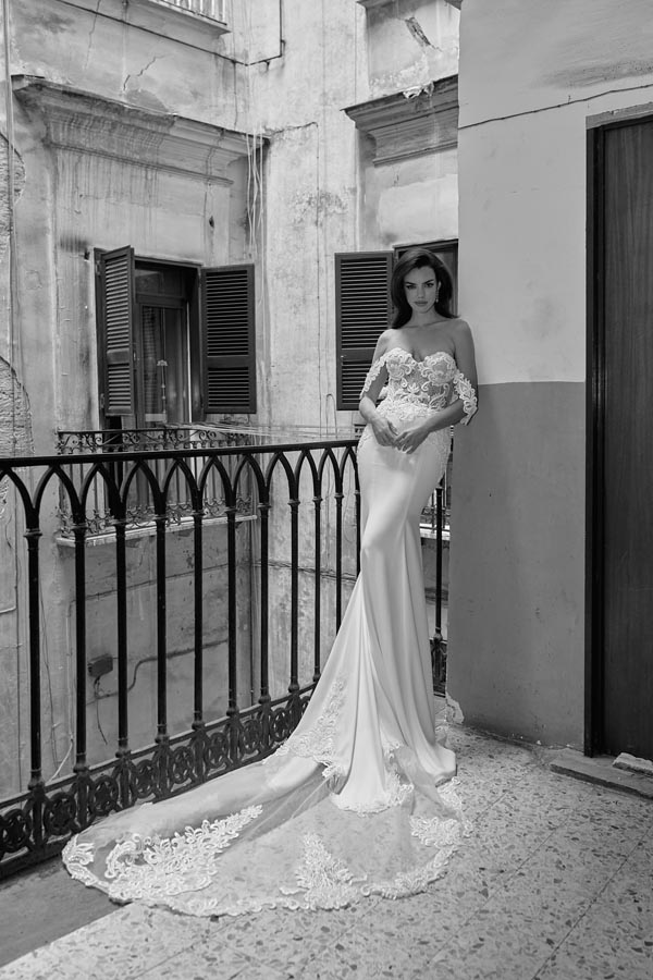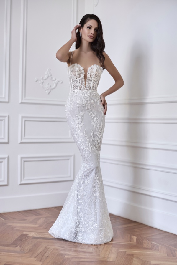 Inspired by the sinuous curves and irresistible allure of mythical sea creatures, the mermaid wedding dress shapes every bride into a symbol of elegance and seduction. Its “body-hugging” silhouette flares out into a spectacular end, in a celebration of sensuality and feminine power, perfect for a wedding steeped in sophistication.