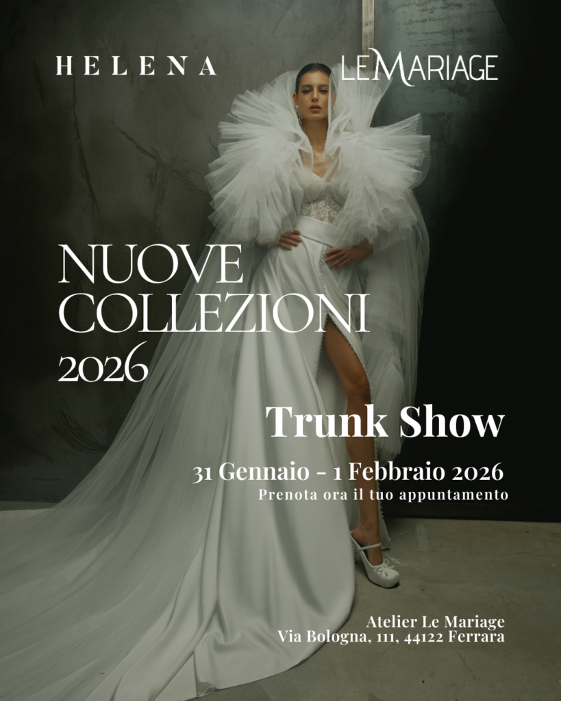 Il matrimonio non è un fermo immagine, ma un racconto in movimento, ricco di sfumature e cambi di scena. Crediamo che l’abito debba riflettere questa complessità, dando voce a ogni sfaccettatura della personalità di chi lo indossa. Proseguendo il nostro viaggio attraverso l’eccellenza italiana, siamo orgogliosi di annunciare la prossima tappa esclusiva in Emilia Romagna: il 31 Gennaio e 1 Febbraio saremo ospiti del prestigioso atelier Le Mariage a Ferrara.
