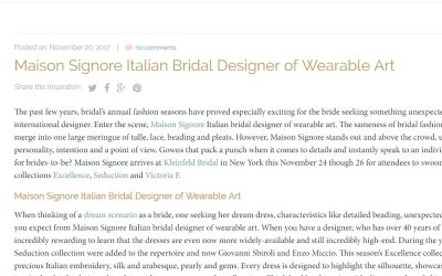 Sta diventando sempre più frequente fissare la data del giorno delle nozze in autunno e questa è un’ottima notizia per le spose che vorrebbero sfoggiare abiti elegantissimi. Vediamo insieme le novità delle collezioni Bridal firmate Maison Signore per il 2022/2023!Le...
