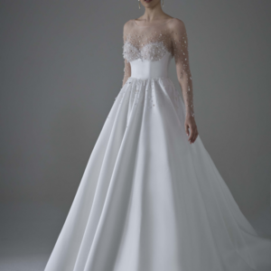 Perché è l’abito che celebra l’eleganza come forma di autorevolezza, pensato per una sposa che non vuole semplicemente un vestito, ma un’affermazione di stile, bellezza e unicità.