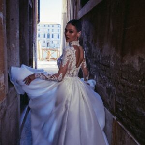 Indossando Adularia, la sposa sarà avvolta in un’aura di romanticismo e determinazione, con un’imponenza che lascerà tutti senza fiato.
