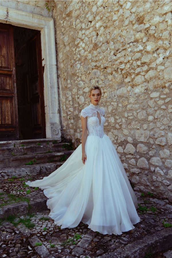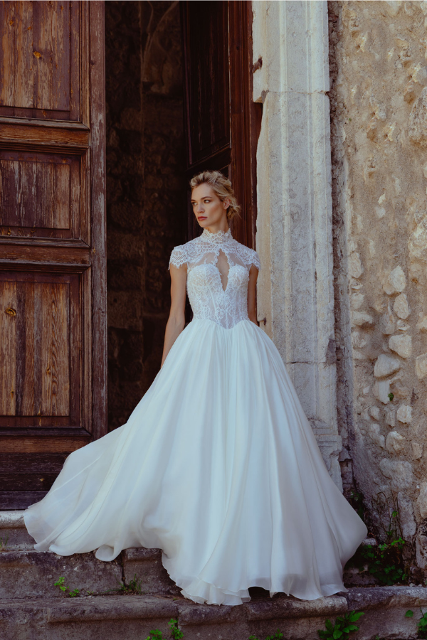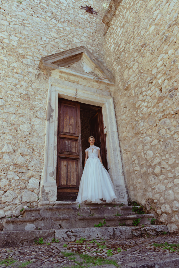 È pensato per chi vuole dominare la scena con classe, per chi cerca un’esperienza totale, che trasformi il giorno del matrimonio in un vero e proprio atto d’identità. Perché Bellatrix è un’estensione dell’io più autentico e imponente della donna che lo indossa. E la accompagna con grazia e potenza come una corona cucita addosso.