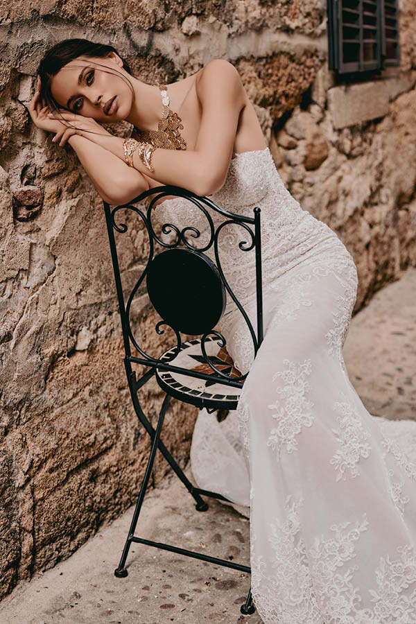Come le onde accompagnano dolcemente lo scandire di ogni attimo, l’abito avvolge la sposa nel giorno più importante, è al suo fianco per evocare la sua bellezza.