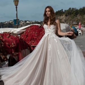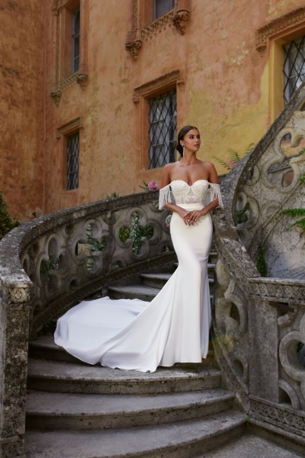 L’abito “Margarita” di Maison Signore è una celebrazione della sensualità, eleganza e determinazione, perfetto per la sposa che desidera distinguersi. Le fantastiche alette in cristallo removibili con frange gioiello conferiscono al capo un’unicità e un’eleganza ineguagliabili, ispirate all’icona moderna Blake Lively e alla storica Audrey Hepburn.