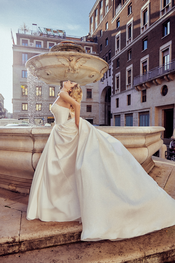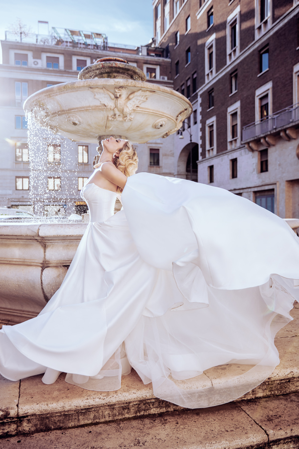 Intramontabile come l’opera cinematografica “la Dolce Vita”. Eterno come Roma che brilla con la sua storia. Autentico come la bellezza di una sposa che indossa il nostro abito Melania.