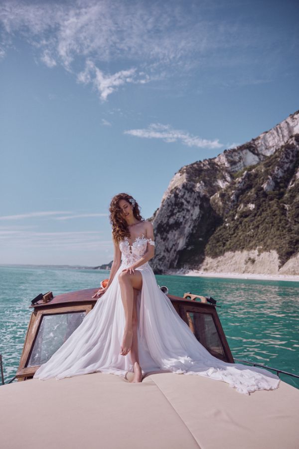 Definire Mirabelle un semplice abito da sposa sarebbe riduttivo. È piuttosto una creazione ricercata in ogni suo dettaglio. Protagonista della collezione Icons di Maison Signore, Mirabelle si distingue per l’utilizzo sofisticato dello chiffon, materiale che conferisce una morbidezza e leggerezza ineguagliabili. Ogni elemento, dai ricami minuziosi ai dettagli del corpino, è frutto di una scelta meticolosa, mirata a soddisfare il desiderio e l’esigenza di ogni sposa.