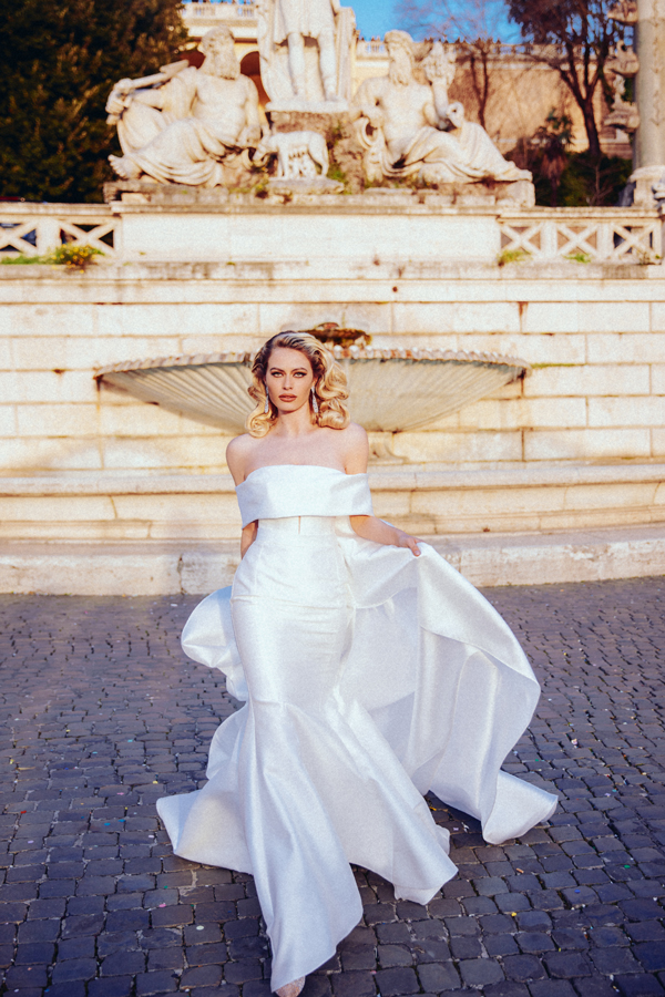 L’abito Mirella enfatizza la fisicità definita a clessidra, è ideale per fisici longilinei e mediterranei. Perfetto per tutte le stagioni, sia per matrimoni di giorno che di sera