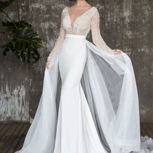 - Trasformabile offre due look in uno: la maestosità della sopragonna per l’entrata e il design a sirena per una sensualità senza tempo durante la festa.