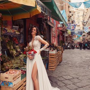 Così come Porta Nolana rappresenta un ingresso scenico nella pulsante città partenopea, l’abito omonimo della collezione Sofia garantisce un ingresso altrettanto spettacolare nel giorno più importante della tua vita.