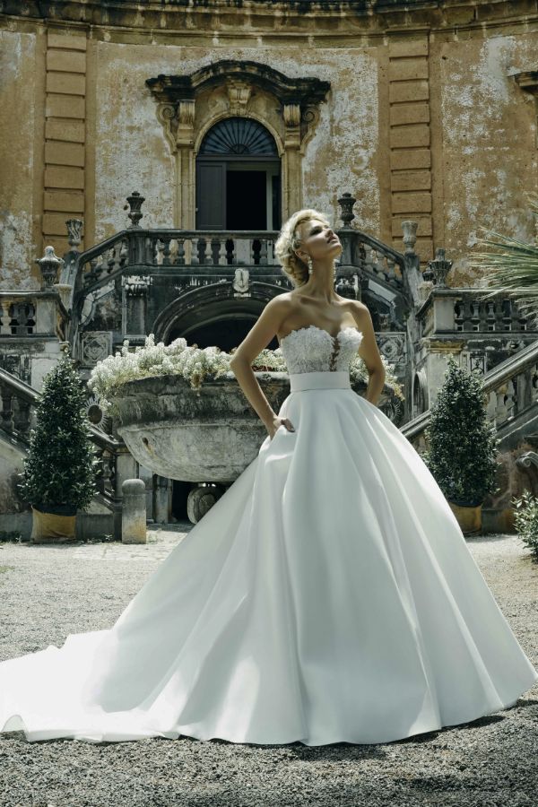 L’abito da sposa Smeraldo prende il nome dalla preziosa pietra smeraldo, simbolo di speranza e longevità dei sentimenti. Come questa gemma unica, l’abito Smeraldo emana dolcezza, bellezza e romanticismo, rendendo la sposa l’eroina romantica di un giorno perfetto.