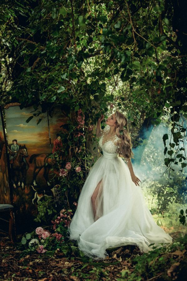 - Velo lungo in tulle – Per enfatizzare la leggerezza dell’abito e creare un effetto principesco.