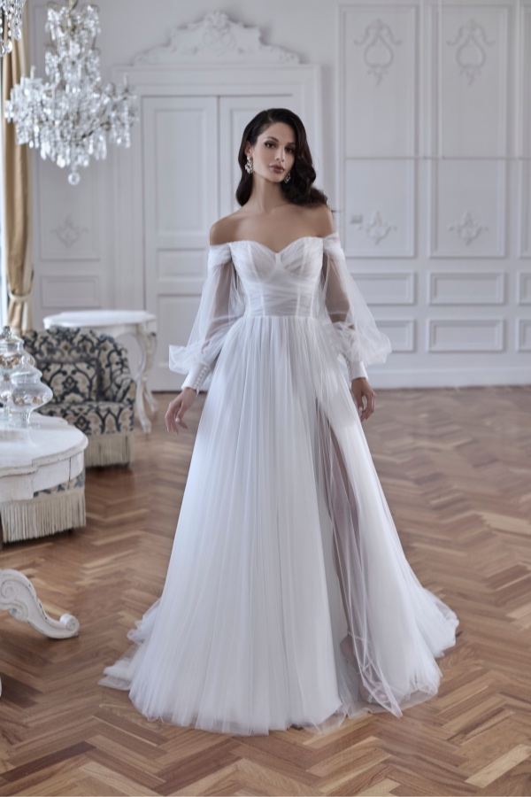- Abiti da sposa in tulle con maniche lunghe, ideali per le stagioni più fredde;
